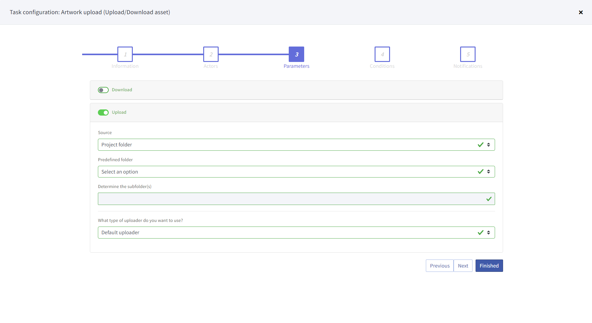 When opening an existing tasks, it is now possible to click on the step (1 to 5, information, actors,…) on the top of the task configuration pane without clicking next. This makes it easier to navigate the task configuration pane.